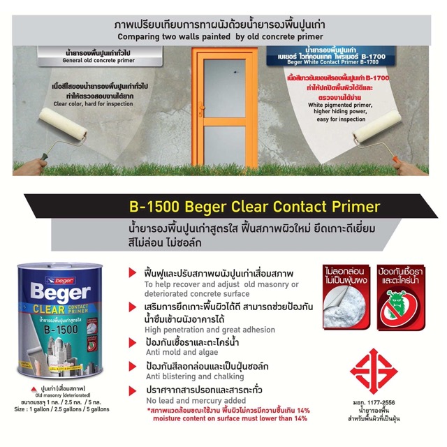 สีรองพื้นปูนเก่า เบเยอร์ เคลียร์ คอนแทค ไพรเมอร์ บี-1500