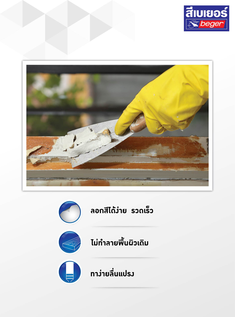 ลอกสีง่าย ไม่เปลืองแรงขัด ไม่ทำลายพื้นผิว ทาง่าย ลื่นแปรง ลอกสีได้ง่าย อย่างรวดเร็ว