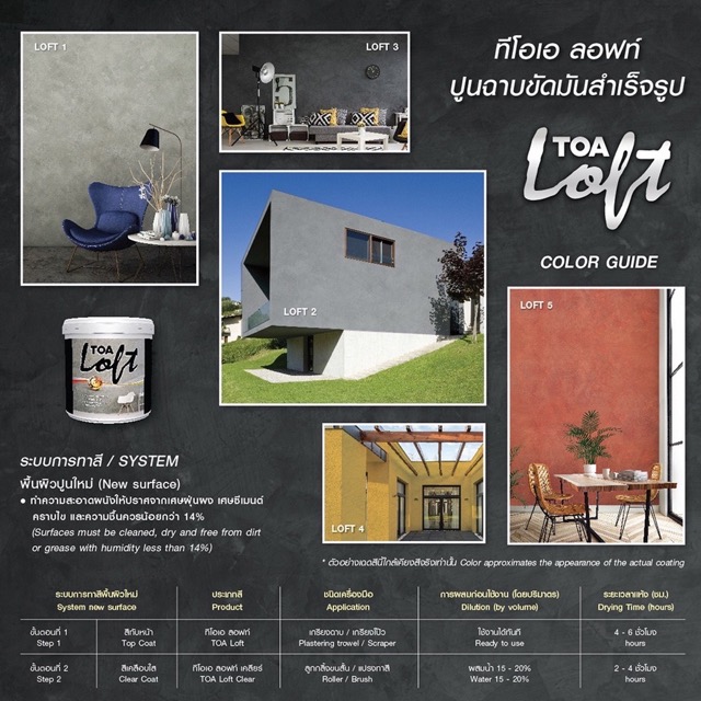 ทีโอเอ ลอฟท์ ปูนฉาบขัดมันสำเร็จรูป สำหรับตกแต่งภายนอก