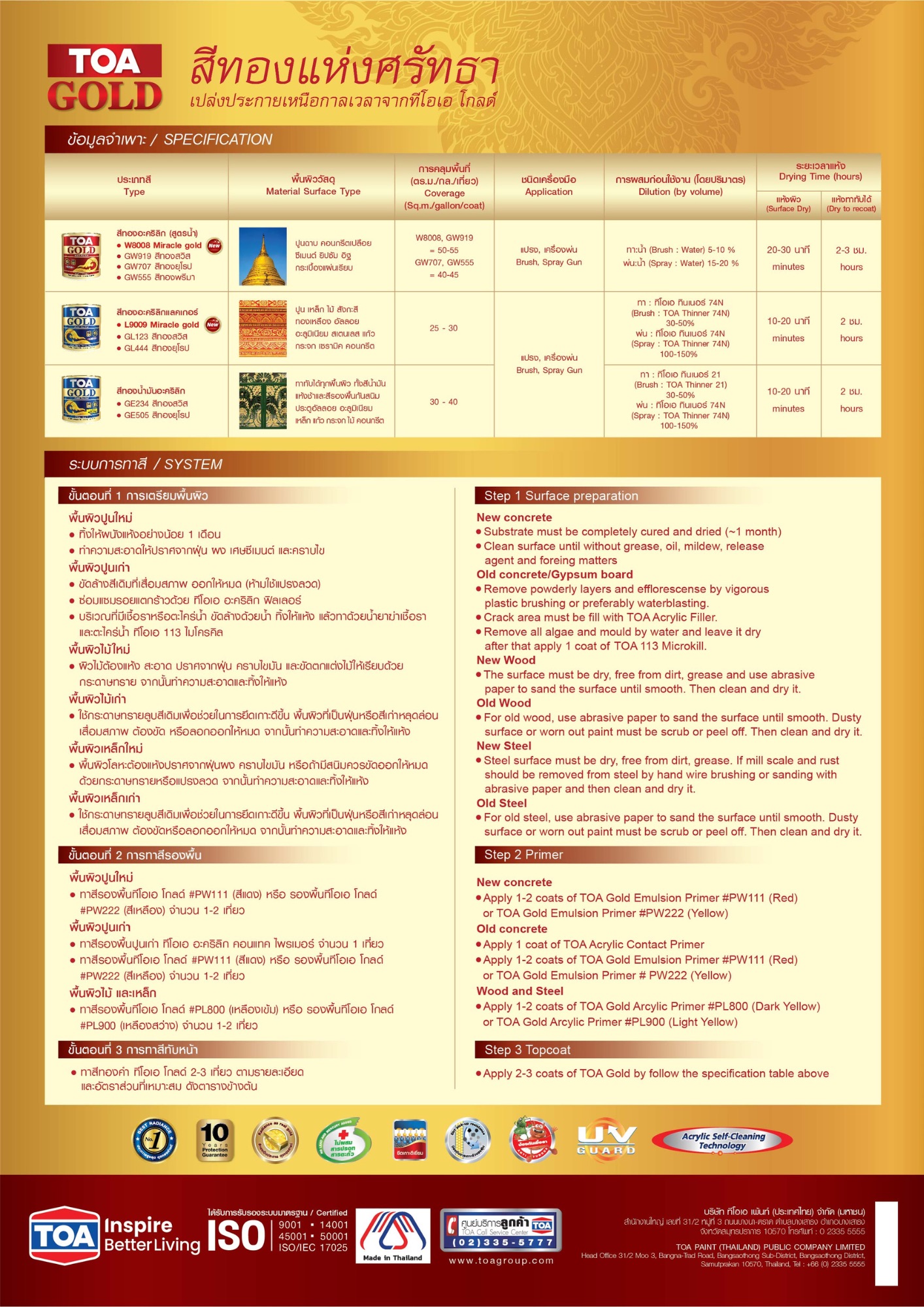 สีทอง TOA 1/4 กล. GW707 สูตรน้ำ (สีทองยุโรป)