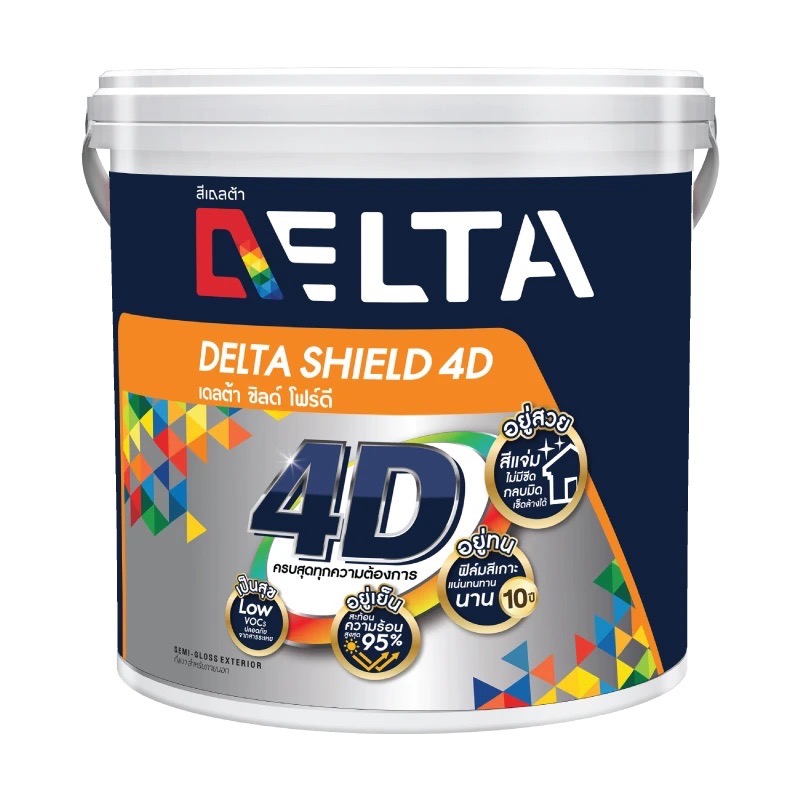 นวัตกรรมที่ผ่านการคิดค้นจาก DELTA QUALITY LAB สีทับหน้า เดลต้าชิลด์ โฟว์ดี มีผงสีคุณภาพพิเศษ ผลิตจากอะคริลิคแท้ 100% ให้คุณสมบัติที่ทนความเป็นด่างได้ดี ป้องกันเชื้อรา และตะไคร่น้ำ ฟิล์มสีทนทาน ด้วยคุณสมบัติ D Cross Bonding ฟิล์มสีเรียงตัวกันอย่างเหนียวแน่น ระดับนาโน ช่วยเสริมการยึดเกาะได้เป็นอย่างดี อีกทั้งยังสามารถกลบมิดพื้นผิวได้ดีเยี่ยม กลิ่นอ่อน ไม่เป็นอันตรายต่อระบบทางเดินหายใจ ทนทานสูงสุด 10 ปี สะท้อนความร้อนได้สูงสุด 95%