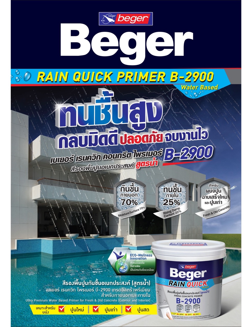สีรองพื้นปูนกันชื้นอเนกประสงค์ BEGER Pro Quick Primer กล. B-1900 สูตรน้ำมัน